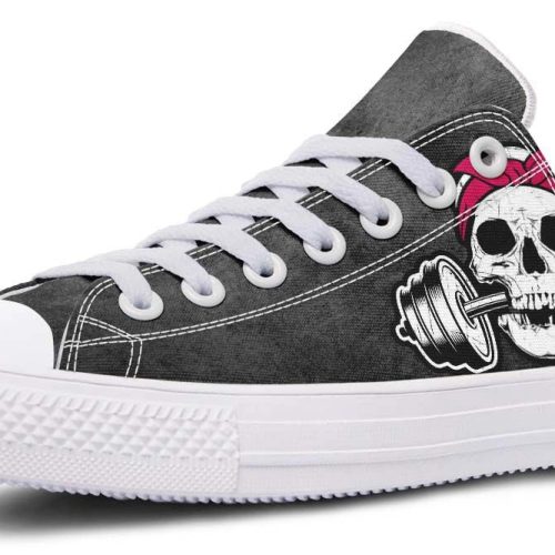 Lady Skull Gym Tattoo White Lowtop Sneakers