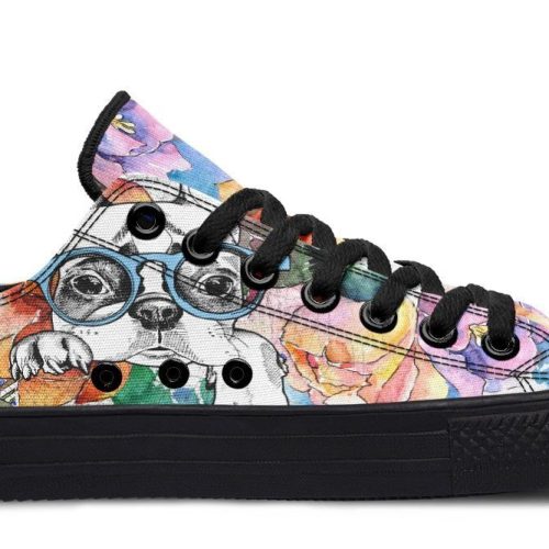 Quirky Dog in Glasses & Floral Low Top Sneakers
