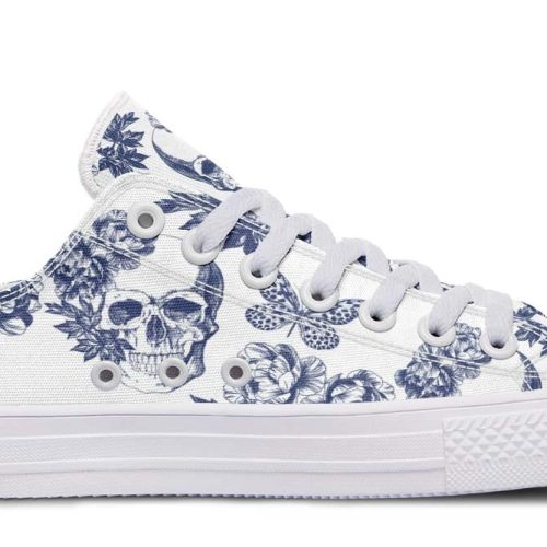Skull and Moth Low Top Sneakers – Gothic Aesthetic Footwear