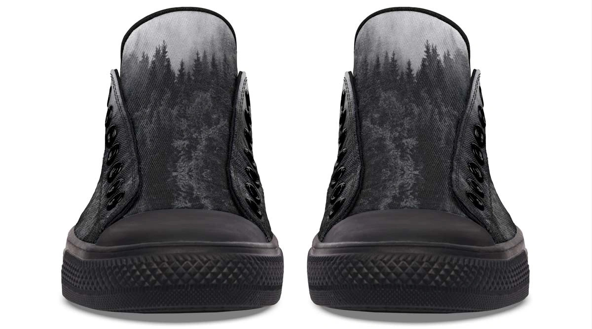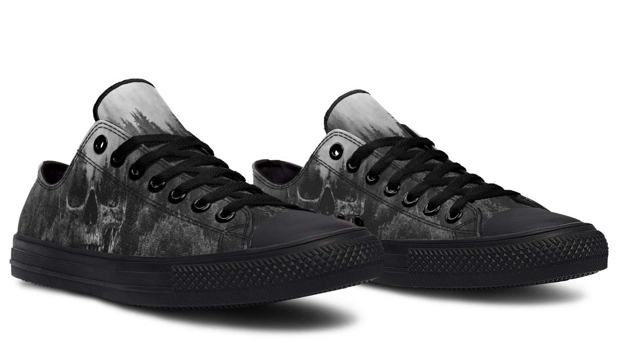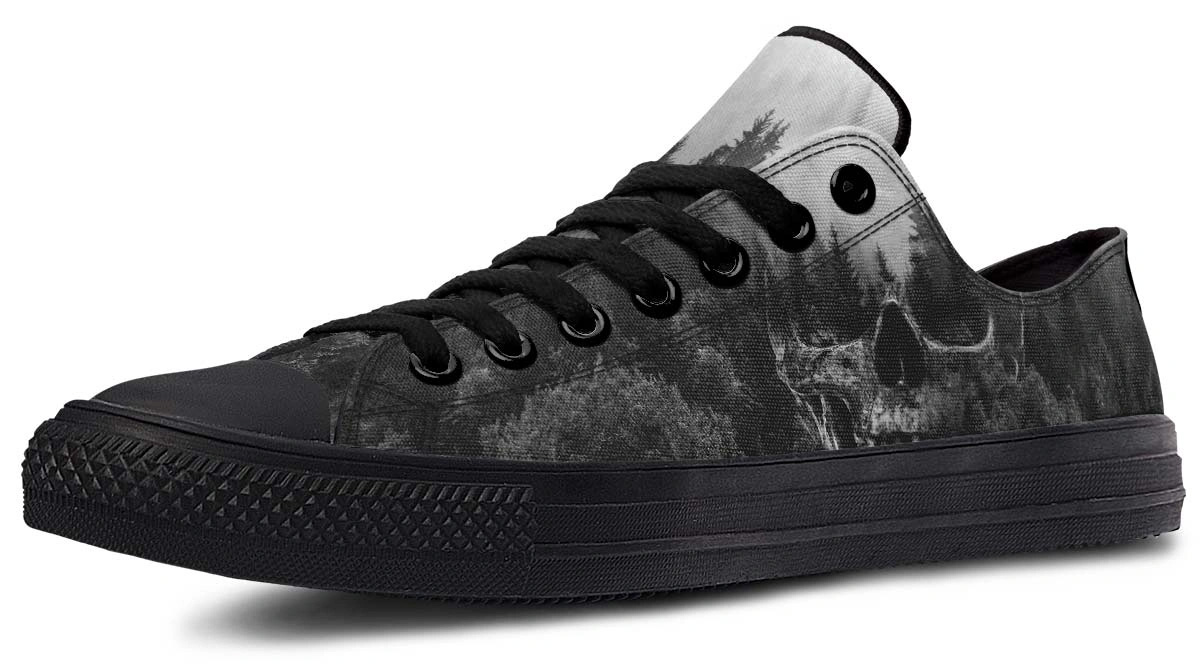 Explore the dark side of style with Dead Forest sneakers. These black low tops feature a unique gothic forest pattern, perfect for an edgy, nature-inspired look.